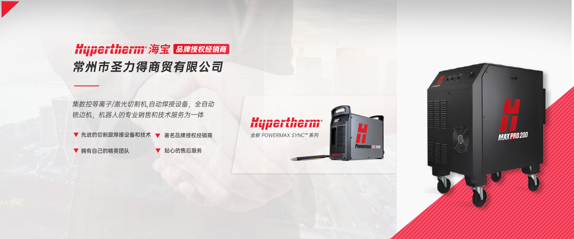 常州市圣力得商贸有限公司是一家集数控等离子/激光切割机,自动焊接设备,全自动铣边机,机器人的专业销售和技术服务为一体的公司。本公司是世界品牌Hypertherm(美国海宝)公司的授权经销商。 公司是一支技术稳定、服务优良、富有朝气的精英团队。公司致力于将国外先进的切割跟焊接设备和技术介绍给中国的机器制造商和终端用户,并为用户提供品质的产品和完善的售后服务?! 」局饕硪韵虏罚骸 ?.美国海宝Hypertherm等离子机用电源,手持电源,原装易损件及备件 2.韩国赛拉科(CERACO)铣边机,南京顶瑞自动焊接小车 3.迈誓坦(MicroStep),日本田中(TANAKA),武汉法利莱(FARLEY-LASERLAB),江苏博大品牌等离子切割机,激光切割机及维修配件。 4.美国海宝,美国飞马特,凯尔贝等原装正品易损件及配件 5.激光切割机,等离子切割机,火焰切割机升级,安装与调试及技术升级改造项目 6.机器人焊/切生产线 热忱欢迎广大用户前来询价及洽谈。